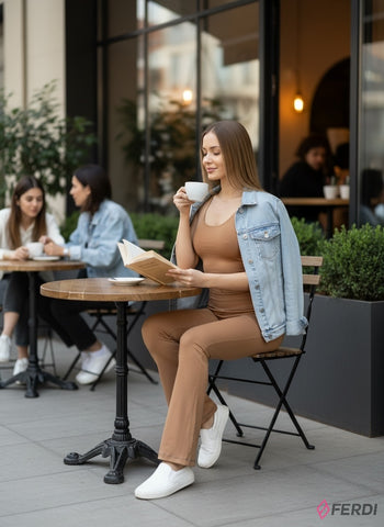 SET Deportivo "Serenidad Activa": Top y Pantalón Acampanado de Tejido Premium Color Camel En oferta
